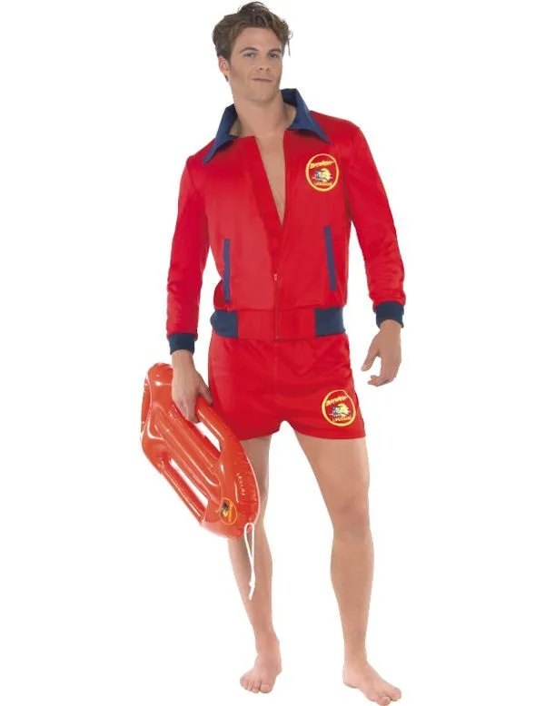 In dit Baywatch man kostuum lijk je als twee druppels water op David Hasselhoff in zijn jonge jaren. Overduidelijk nog voor de tijd dat hij ten onder ging aan de drank. Want eerlijk is eerlijk, je ziet er bijzonder goed uit in dit pak. Zelfs die mooie vrouw in sexy Pamela kleding wil maar wat graag met jou het water in duiken… Had David die lifesaver nu maar nooit los gelaten… dan liep hij er vast nog net zo kwiek bij als jaren geleden.