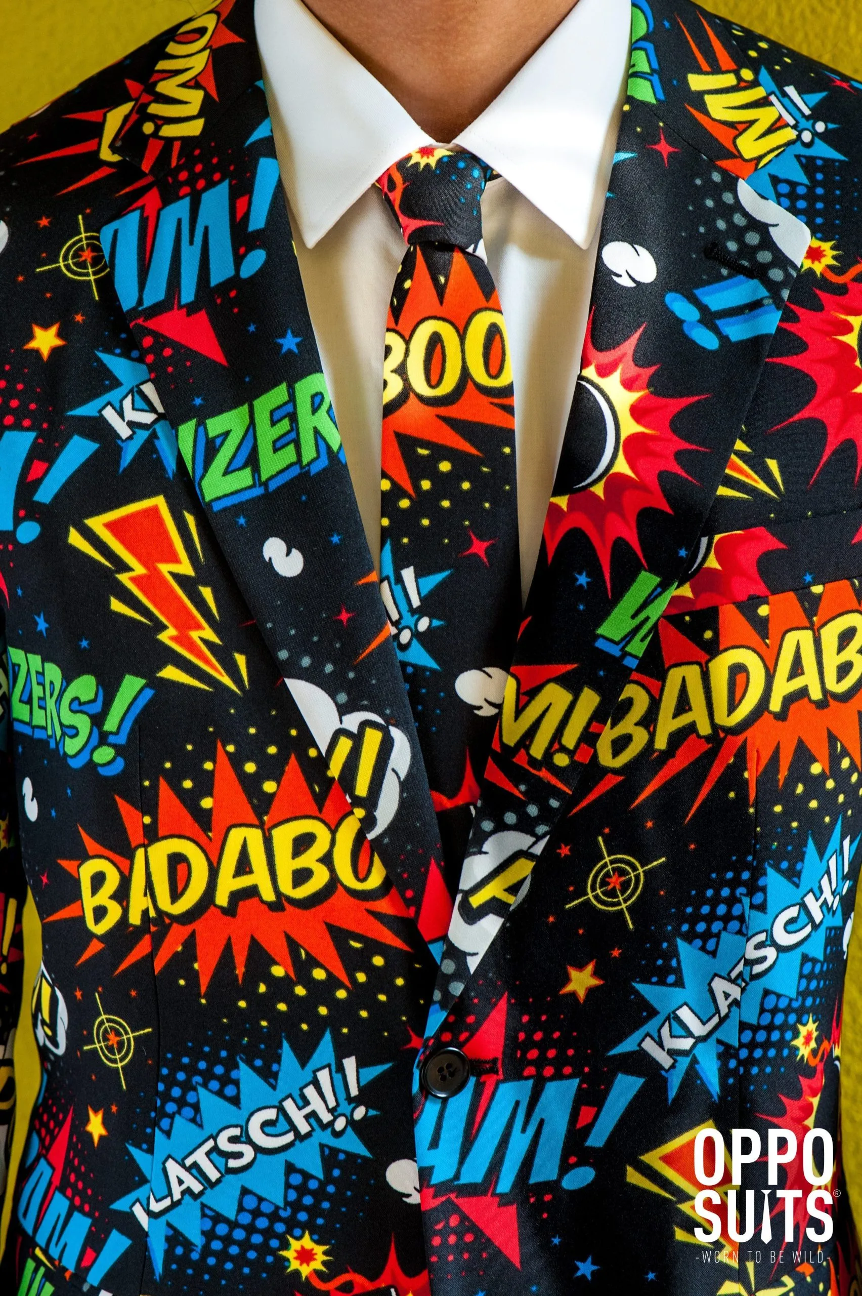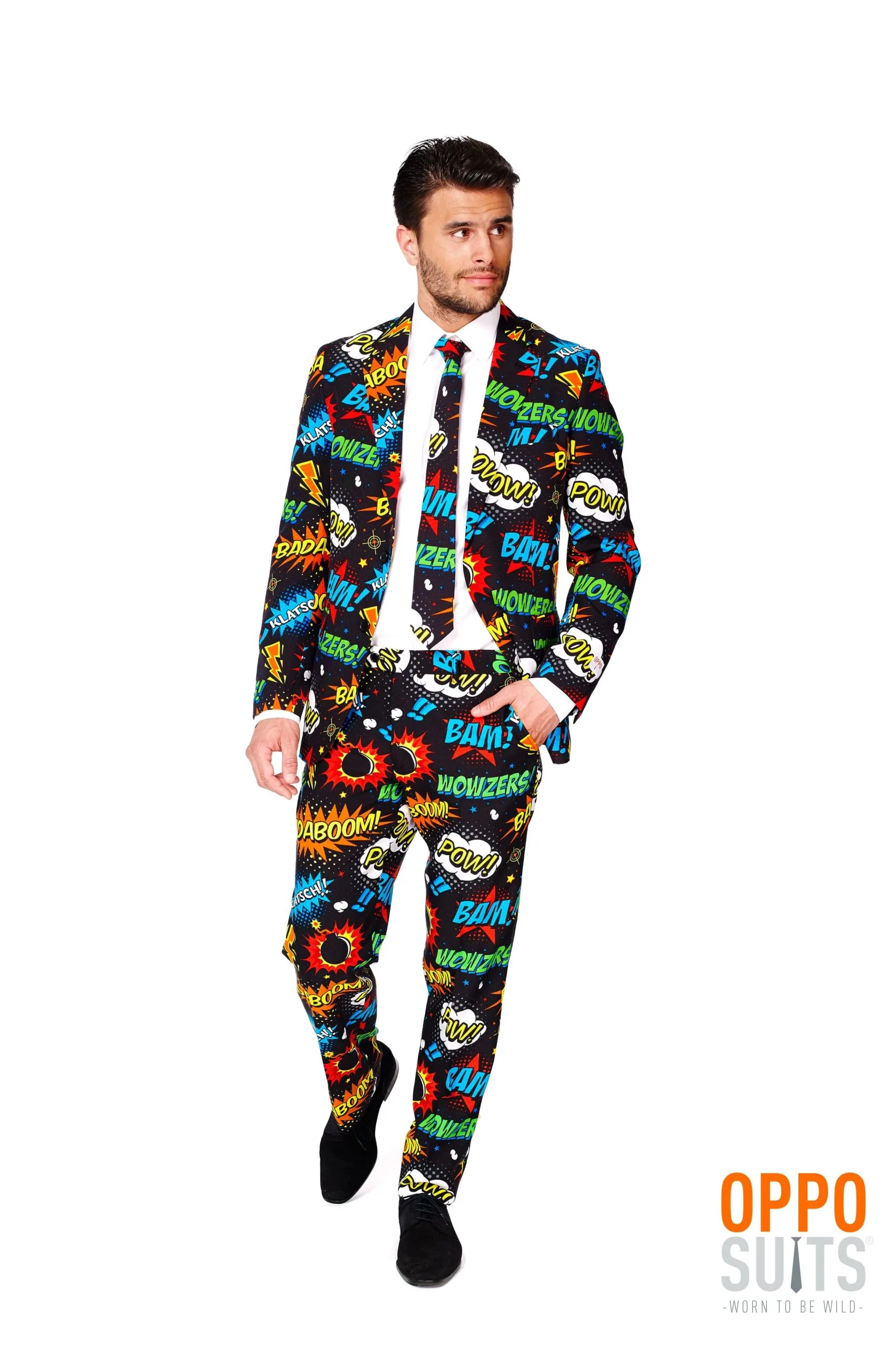 Wat is dit een leuk en vrolijk kostuum van Opposuits. Je ontvangt dit stijlvolle kostuum met bijpassende das (en met een mooi gevouwen broek met perfect afgewerkt jasje natuurlijk) en het is een leuk en veelzijdig pak voor veel verschillende soorten feesten. Wij zien je lopen op een festival, examenuitreiking, slotfeest of diner-dansant. Of bij op een zakelijke beurs bij een spetterende introductie van een nieuw product. Het pak is goed en strak genoeg gesneden om er echt goed mee voor de dag te komen.