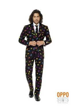 Kleurig Tetris Blokken Computerspel Man Kostuum