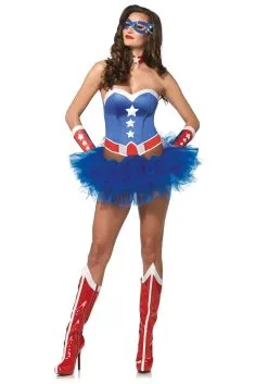 4delige Amerikaanse Superheldin Set Blauw Vrouw Kostuum