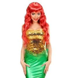 Fantasia Pruik Zeemeermin Oranje / Rood