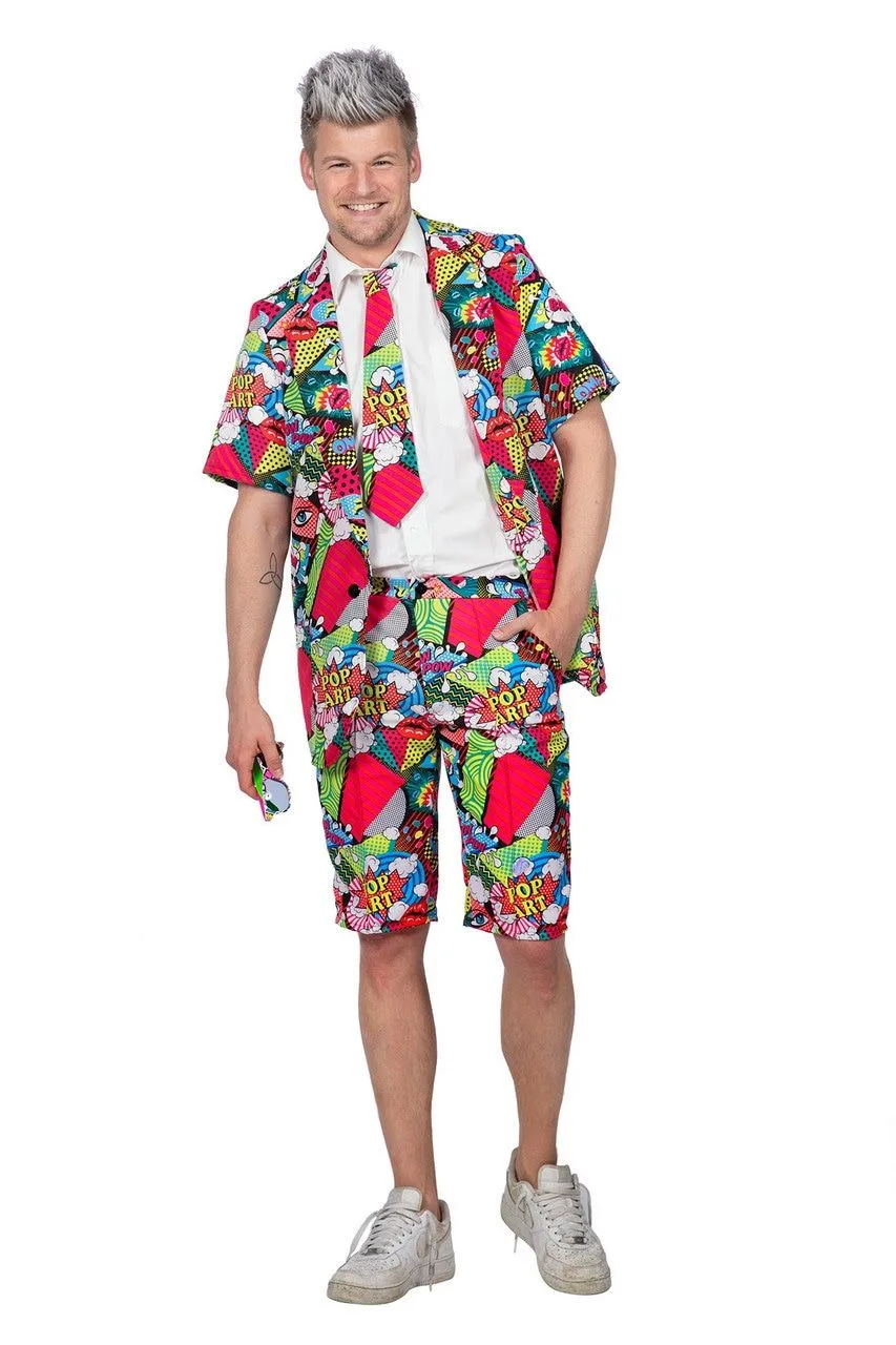 - Het pak bestaat uit een korte broek, een colbert met korte mouwen en een stropdas.