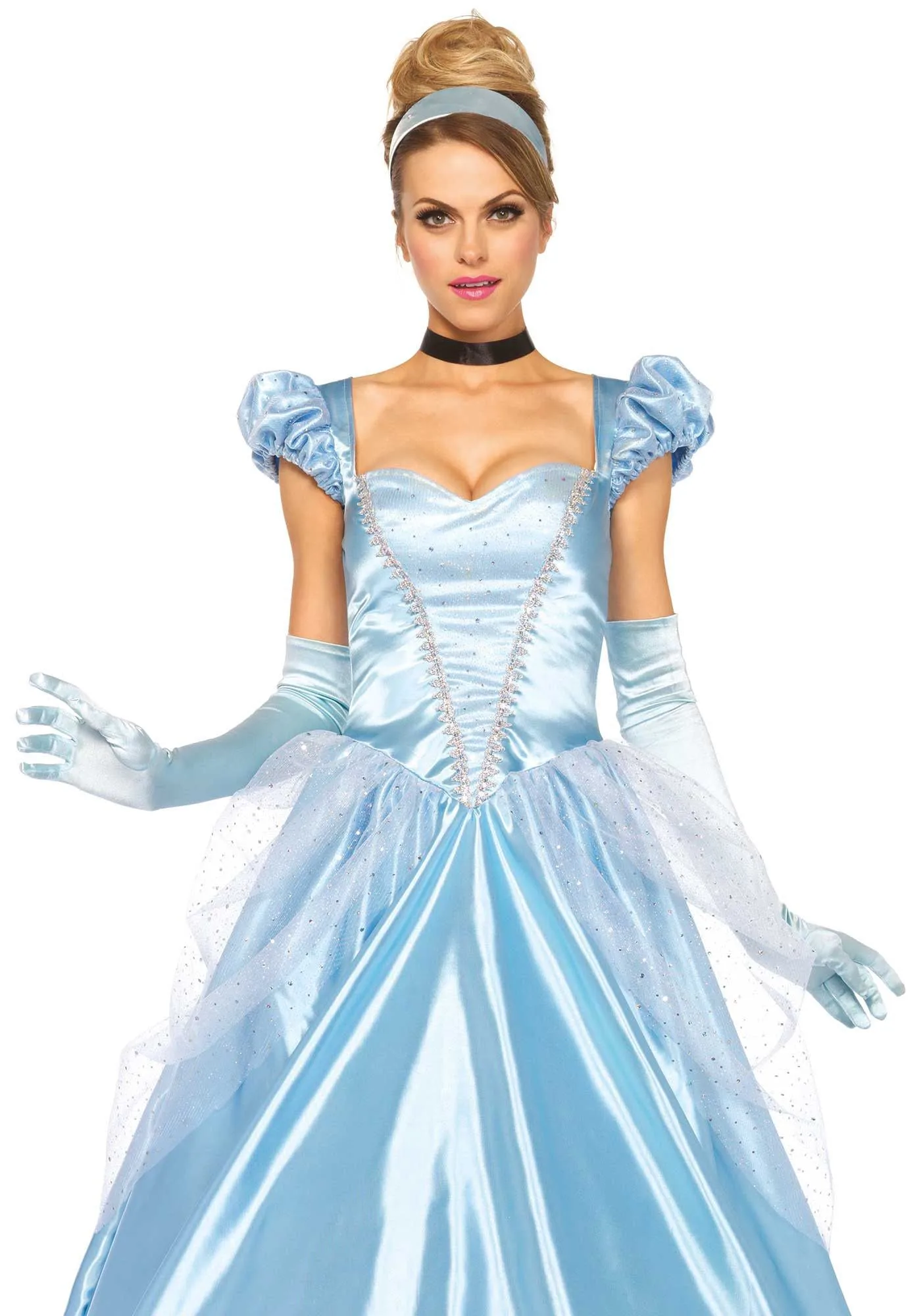 Het is door je Vrouwelijke Assepoester Sprookjes Hoofdrol Jurk kleding niet te zien of je een muiltje mist maar dat is onbelangrijk. Je ziet er in dit hemelsblauwe satijnen Disney kostuum zo formidabel uit dat het niet eens op zou vallen als je mank zou lopen. De mannen op het Tekenfilm feest staan in de rij te popelen om je hand te pakken voor een dans. Nu maar hopen dat zij niet struikelen van de zenuwen.